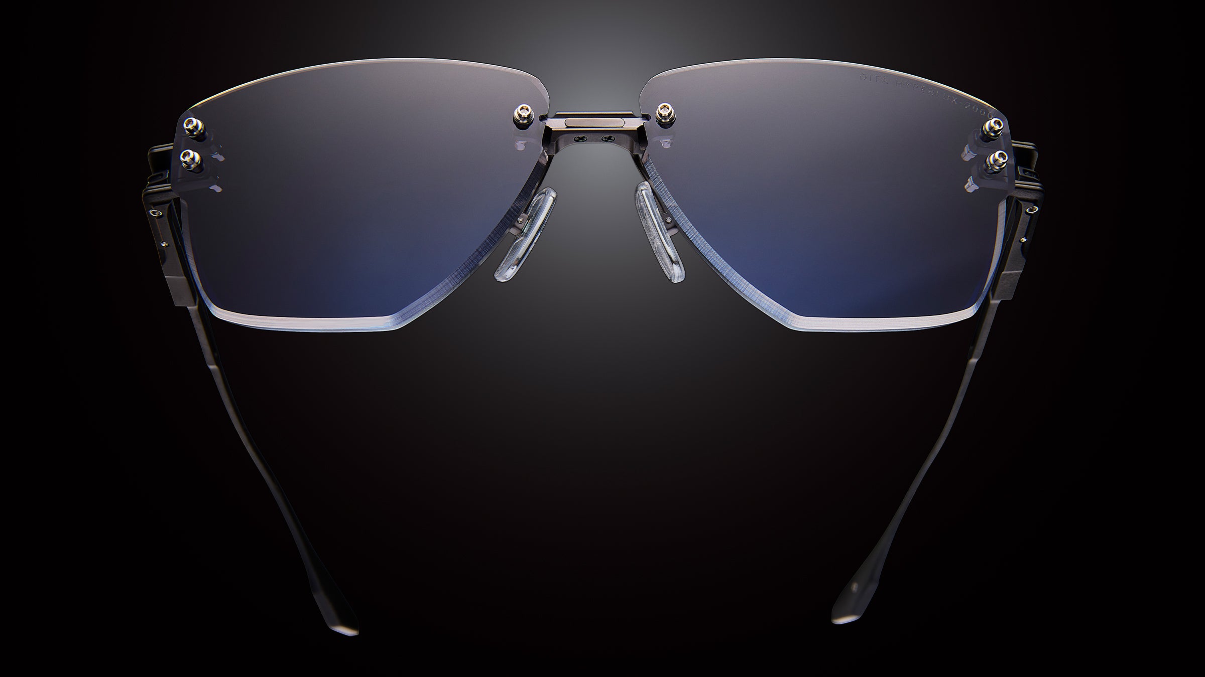 Sunglasses with blue lenses on a black background